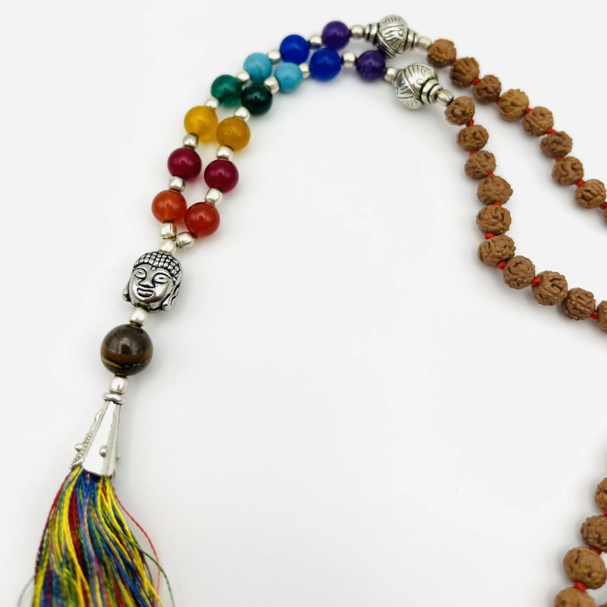 ll mala “Luce dei Chakra” è costituito da semi di rudraksha di piccolo calibro (e quindi più preziose) e pietre semipreziose del colore dei sette chakra. Realizzato a mano a Rishikesh, città sacra allo yoga ai piedi dell’Himalaya, il mala risveglia l’energia dei chakra e eleva le tue frequenze per risvegliarti interiormente e espandere la tua coscienza.